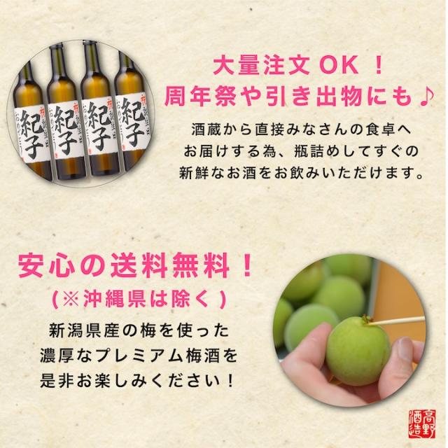 名入れ お酒 梅酒 日本酒仕込み 毛筆手書きラベル 500ml 桐箱入り 新潟 高野酒造 / 送料無料 名入れ 名前入り ギフト プレゼント 母の日 お母さん 誕生日 還暦祝い 古希祝い 喜寿祝い 成人祝い 昇進祝い 退職祝い 男性 女性 酒 お祝い 内祝い のし可
