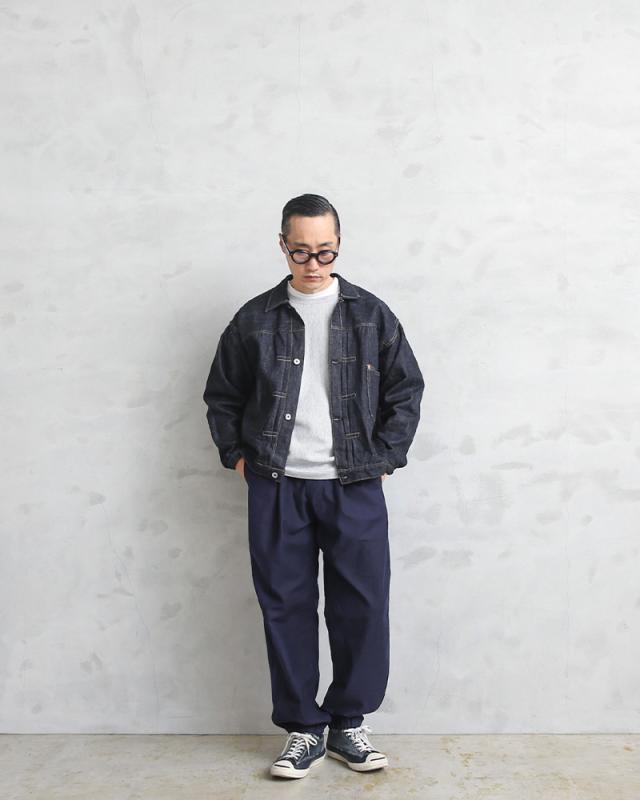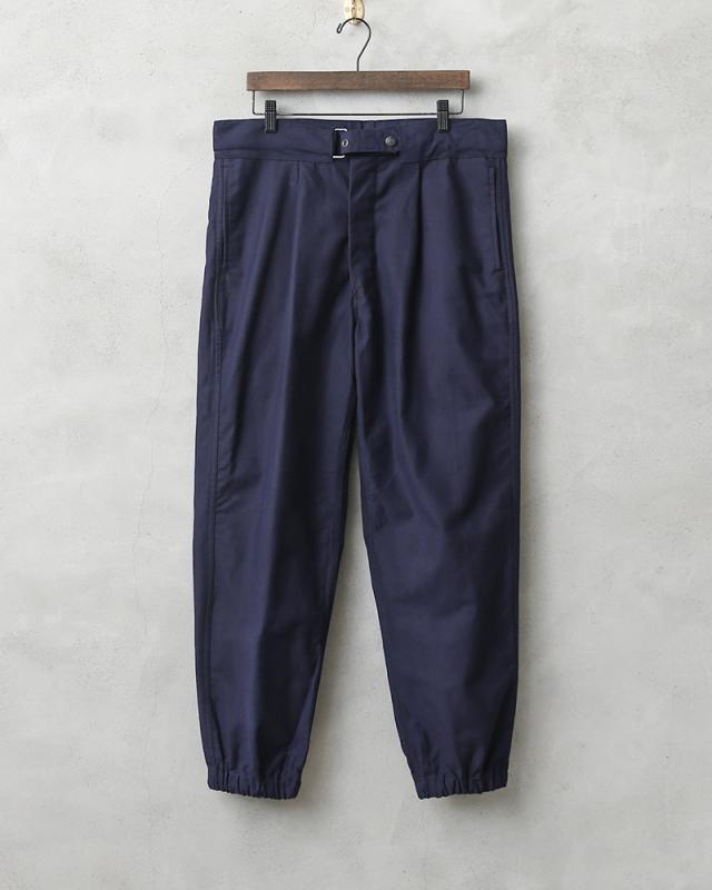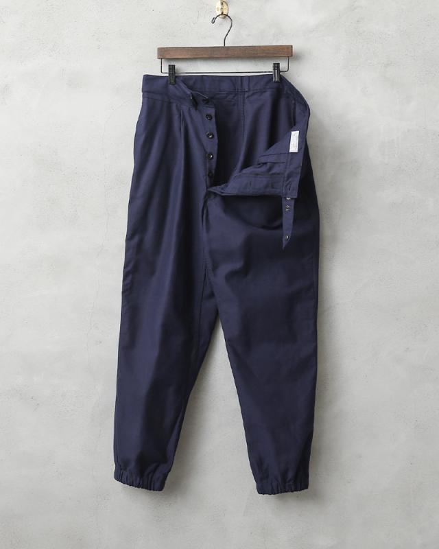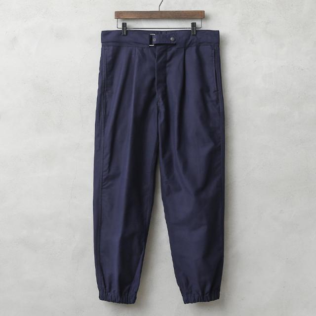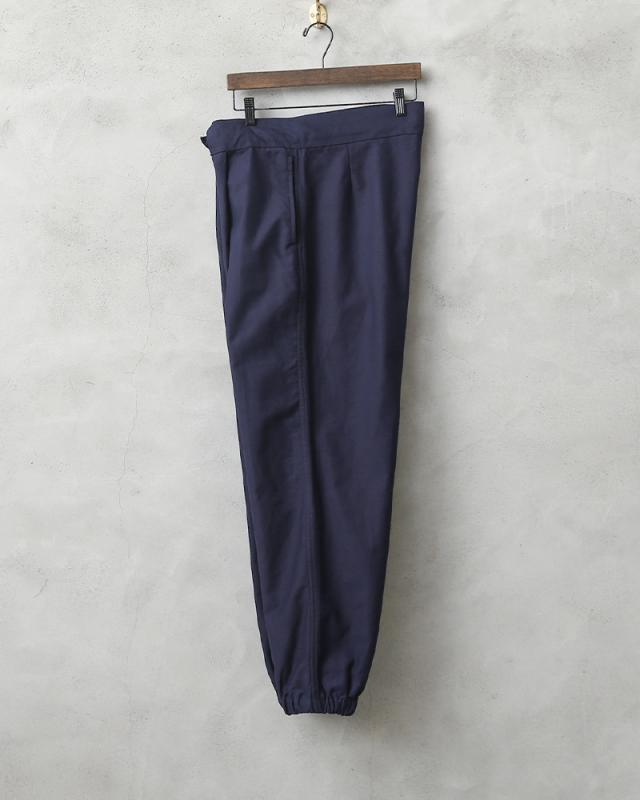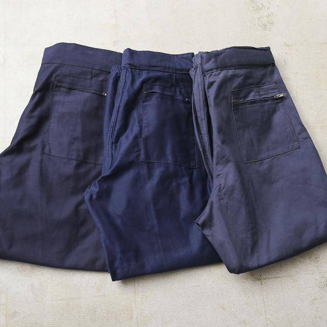 イタリア空軍実物放出のワークパンツが入荷しました。独特な光沢感を持ち、ネイビーブルーのハリのある生地感です。品のある雰囲気を醸し出しており、最高にクールなワークパンツとなっています。シンプルな作りですのでイタリア軍内ではユーティリティパンツとして使われていたパンツだと思われます。裾はゴムシャーリングで伸縮し、綺麗なシルエットでスニーカーなどにも合わせやすいです。