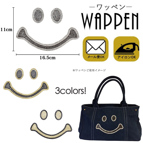 スマイル ストーン ワッペン アイロン接着 縦11cm×横16.5cm にこちゃん ニコちゃん キラキラ アイロンワッペン母の日 プレゼント ギフト