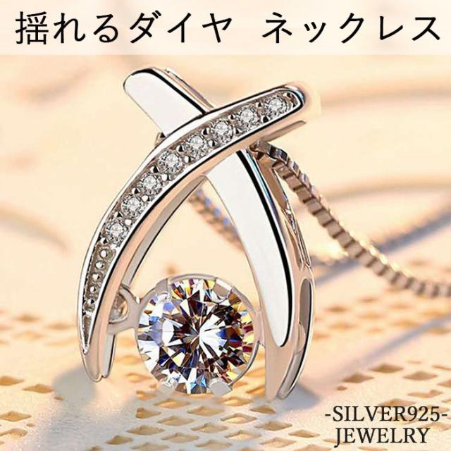 ネックレス レディース ラッキーモチーフ 揺れるダイヤ プラチナ仕上げ シルバー925 CZダイヤ 母の日 女性 彼女 嫁 母 娘 人気 誕生日プレゼント 人気 クリスマスプレゼント