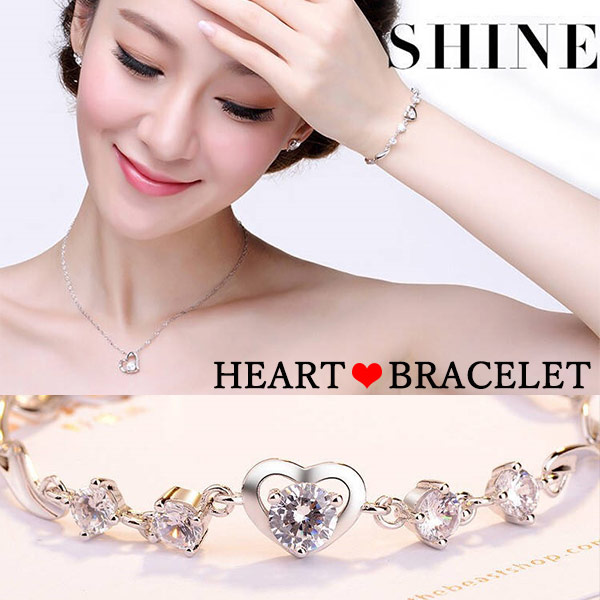 ブレスレット プラチナ仕上げ ハート 豪華5粒 ダイヤ シルバー925 ギフト バレンタイン 人気 パーティー