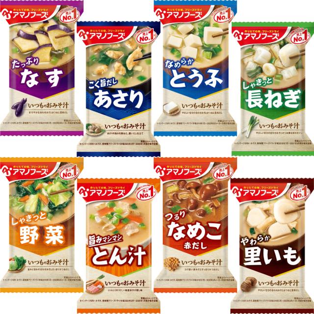 アマノフーズ フリーズドライ 味噌汁 いつものおみそ汁 8種8食 詰め合わせ セット 【 メール便 送料無料 】 インスタント食品 即席味噌汁 常温保存 ご飯のお供 和食 備蓄 保存食 お試し 食品 バレンタイン 2026 ホワイトデー