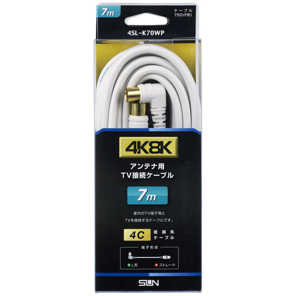 サン電子 4SL-K70WP 4K・8K対応 アンテナケーブル(4C)【7m】ストレートプラグ-L形プラグ[4SLK70WP] 返品種別A