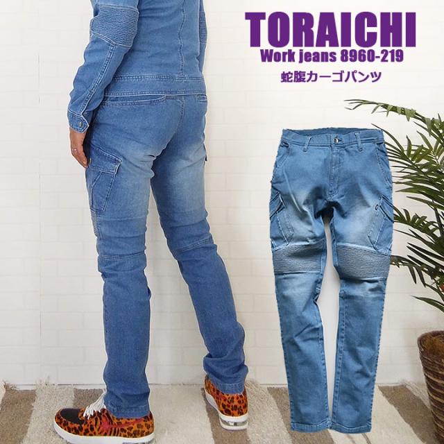 寅壱 ストレッチデニム カーゴパンツ 作業服 蛇腹(トライチ) 8960-219 春夏用素材 デニムカーゴ 8960シリーズ スキニー ズボン