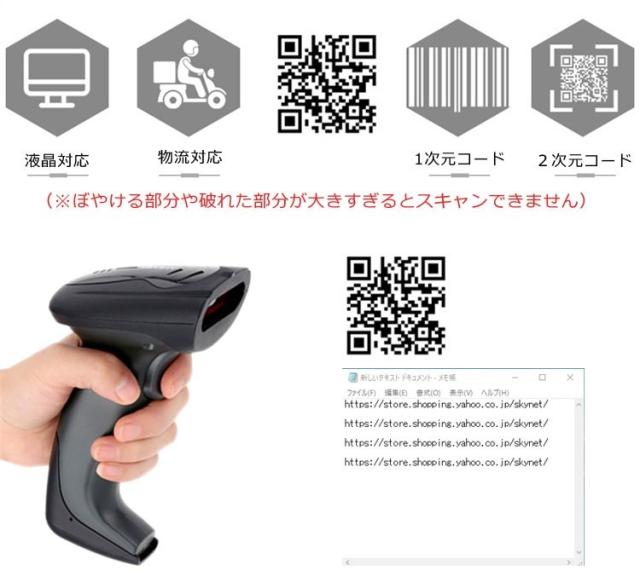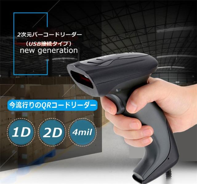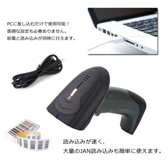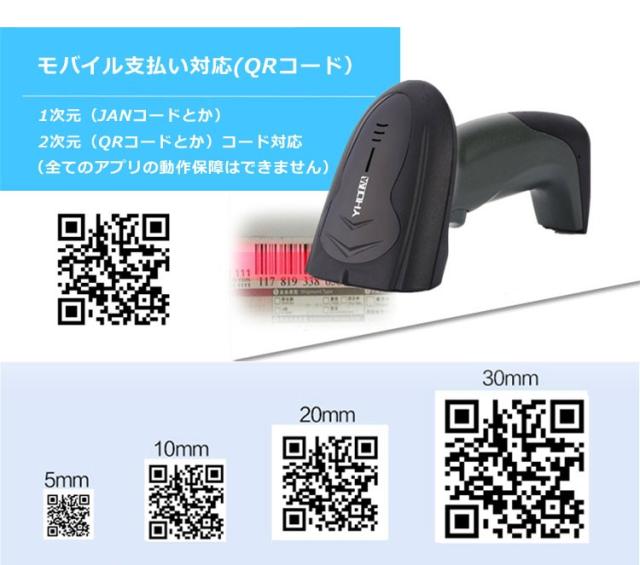 QRバーコードリーダー USB有線バーコードリーダー スマホ画面QRコード読込 USB接続だけ 2次元 スマホ決済対応に YHD12002D