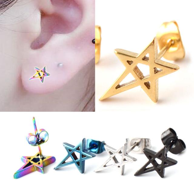 青色と銀色と金色とピンクゴールドと黒色と虹色の6色のアシンメトリーの星をデザインしたサージカルステンレス316L製のピアス。 左右不対象のおしゃれな星のピアスはメンズからもレディースからも支持率が高い。カラーバリエーションも豊富なので色違いで左右でしたりプレゼントやペアルックにもおすすめのサージカルピアスです。キャッチピアスなので装着も簡単。素材も安心のサージカルステンレスなのでファーストピアスやセカンドピアスにも。【スペック】