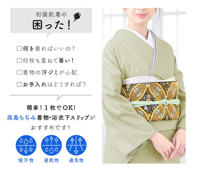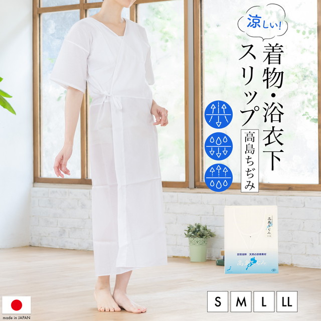 肌襦袢 裾除け 着物スリップ 白 ホワイト 天然素材 高島ちぢみ 肌着 和装下着 着付け小物 和装小物 オールシーズン 夏向け 日本製 【Sサイズ】【Mサイズ】【Lサイズ】【LLサイズ】