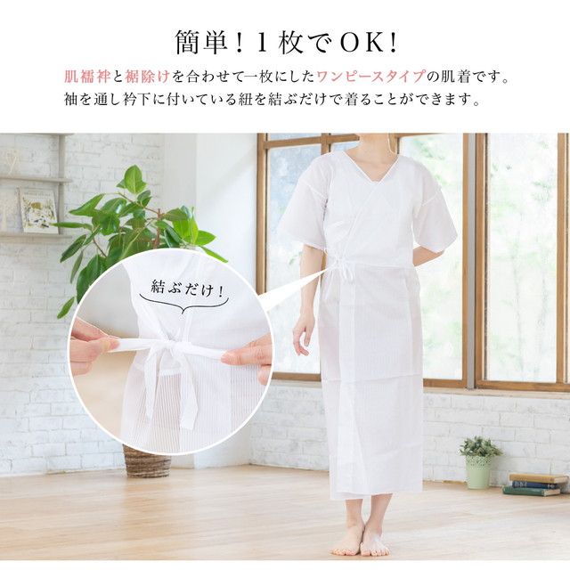 着付けの際に最初に着る肌襦袢と裾除けを合わせて一枚にしたワンピースタイプの肌着です。
