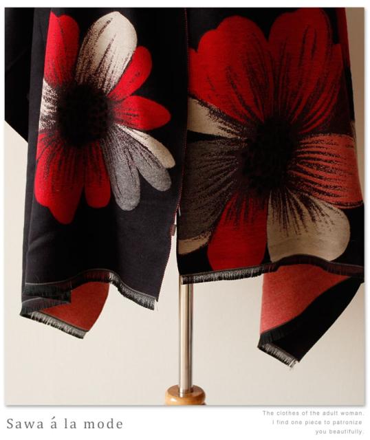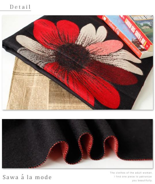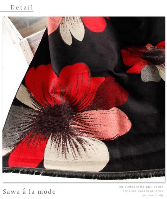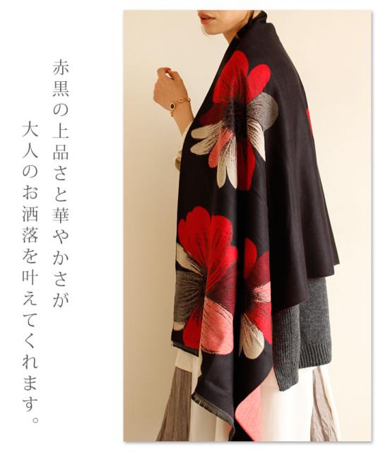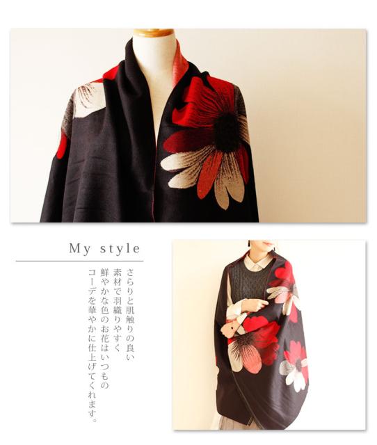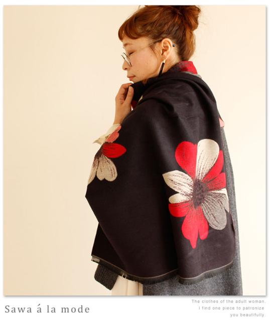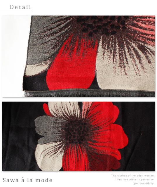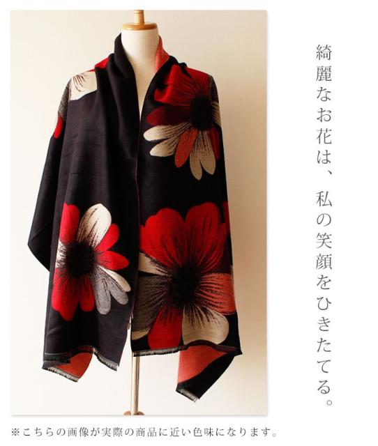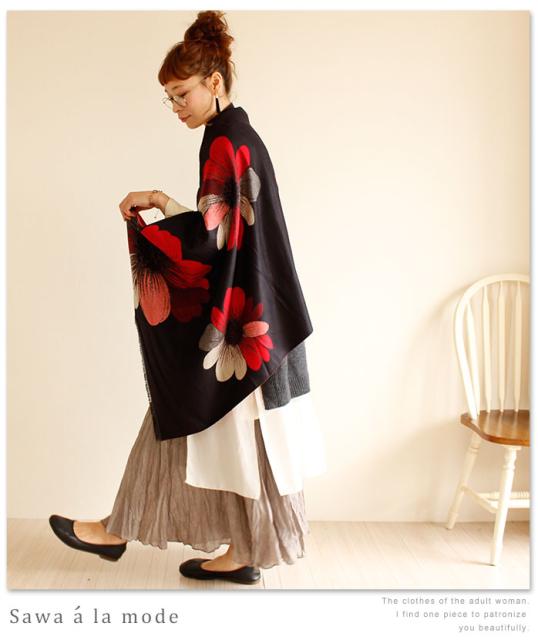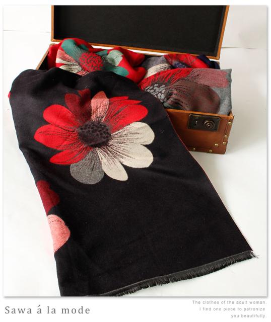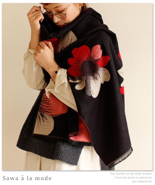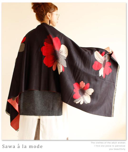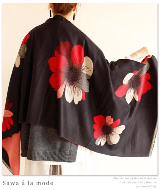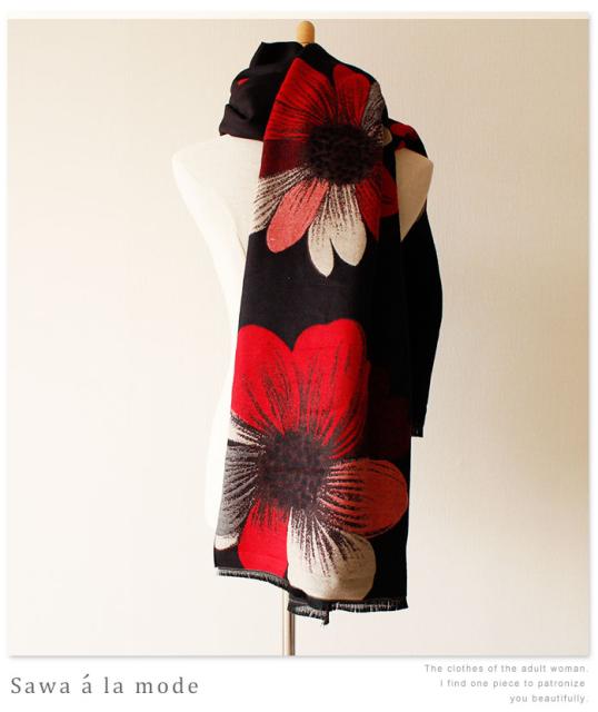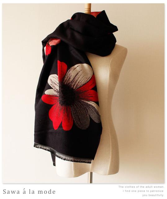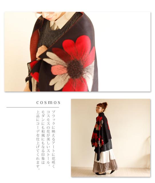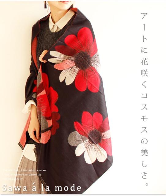 春新作 サワアラモード アートなコスモス模様のストール レディース ファッション ストール コスモス 花柄 ブラック フリーサイズ M L LL Mサイズ Lサイズ LLサイズ 9号 11号 13号 15号sawa alamode 可愛い服 cawaii otona かわいい服 mode-1246