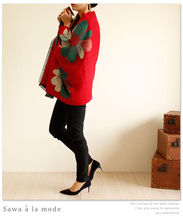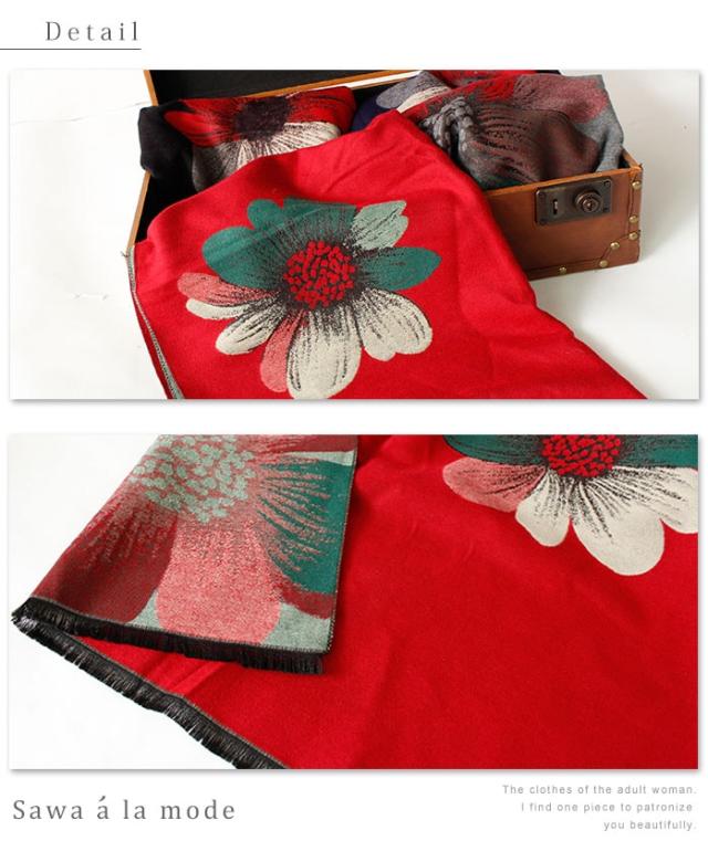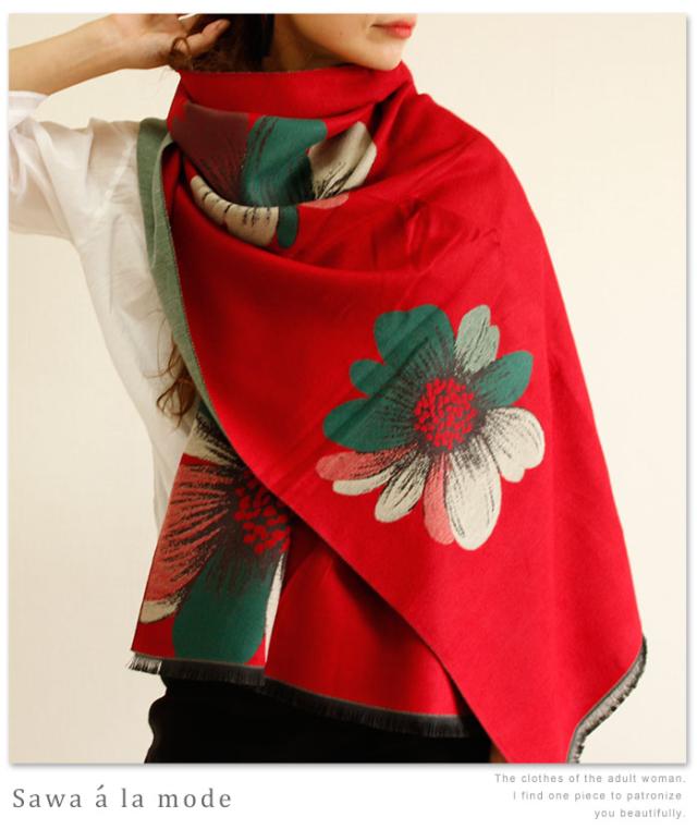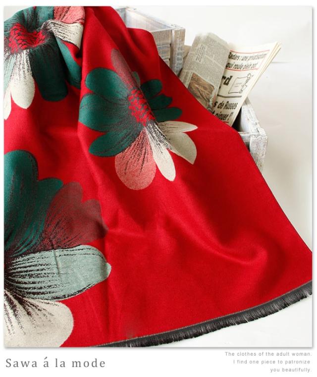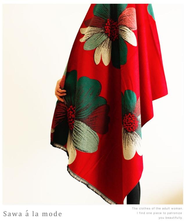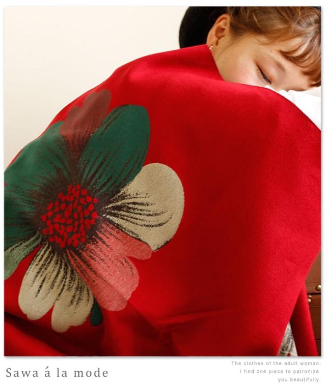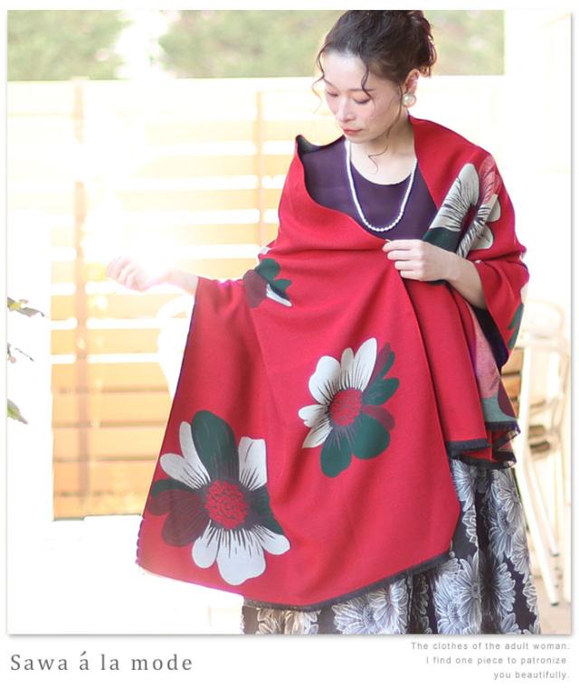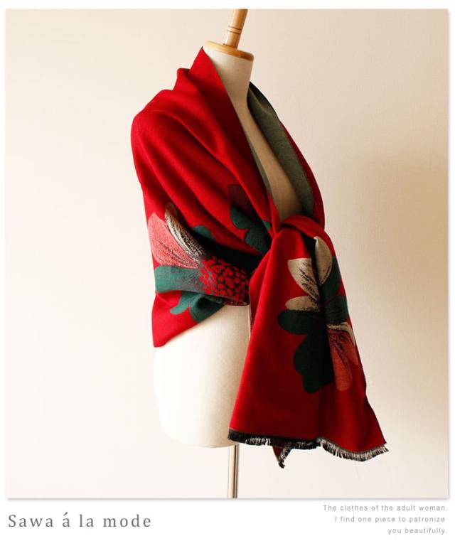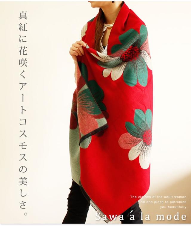 春新作 サワアラモード 真紅に咲くアートなコスモスス柄トール レディース ファッション ストール コスモス 花柄 レッド フリーサイズ M L LL Mサイズ Lサイズ LLサイズ 9号 11号 13号 15号sawa alamode 可愛い服 cawaii otona かわいい服 mode-1247