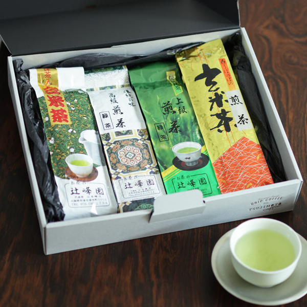 | 内容量 | ・辻峰園謹製 高級煎茶 200g(200g×1袋) ・辻峰園謹製 上級煎茶 200g(200g×1袋) ・辻峰園謹製 抹茶入り玄米茶 200g(200g×1袋) ・辻峰園謹製 煎茶玄米茶 200g(200g×1袋) |