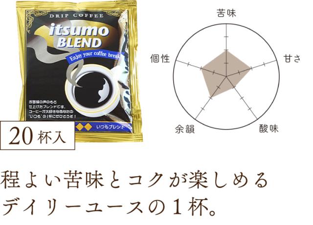 | 原材料名 | コーヒー豆(生豆生産国名: ●定番ドリップコーヒー ・イツモブレンド:ブラジル、インドネシア、ベトナム他 ・お茶屋が考えるまろやかブレンド:ブラジル、コロンビア、エチオピア他 ・ほろにがブレンド:ブラジル、コロンビア、グァテマラ ・キリマンジャロ タンザニアAA :タンザニア ・スマトラマンデリン:インドネシア(北スマトラ州) ●毎月変わるドリップコーヒー 【11月】WINTER winter WINTER:ホンジュラス、エチオピア、メキシコ 【12月】ホワイトキャメル:イエメン 【1月】こしあんに合う珈琲:エチオピア 【2月】WINTER winter WINTER:ホンジュラス、エチオピア、メキシコ 【3月】そよ風ブレンド:パプアニューギニア、コロンビア、ブラジル 【4月】マンボビピ:ケニア |