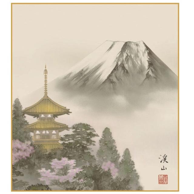 色紙絵 富士山画 【春塔景】 伊藤渓山 [K13-005A]【代引き不可】