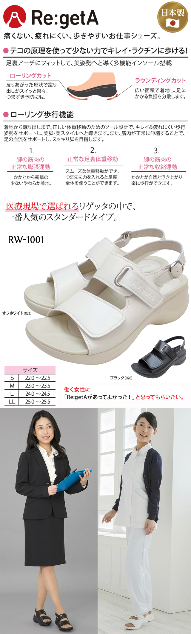 リゲッタ ワークコンフォートサンダル RW1001 ブラック【Re:getA Work・Re:getA サンダル】