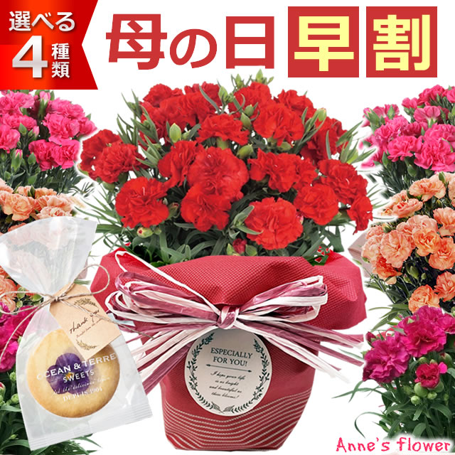 母の日 花 ギフト プレゼント カーネーション 鉢植え 5号鉢 クッキー セット エディブルフルールクッキー 食べられる お花 選べる 生花 鉢 ギフト 送料無料