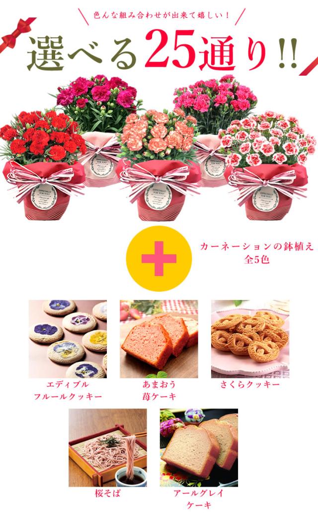 早割開催中! 母の日 花 ギフト プレゼント カーネーション 鉢植え 5号鉢 クッキー 苺 紅茶 ケーキ 桜 クッキー そば セット エディブルフルールクッキー 食べられる お花 選べる 生花 鉢 ギフト 送料無料