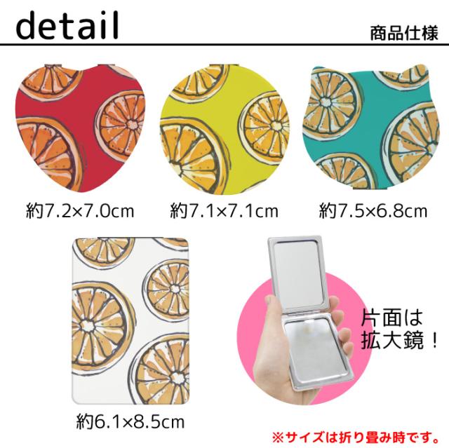 コンパクトミラー 折りたたみ 鏡 コンパクト ミラー 拡大鏡 付 携帯ミラー デザイン プリント ハンドミラー 二つ折り 手鏡 丸型ミラー オレンジ 両面ミラー 四角 長方形 丸 円 ねこ 猫 ネコ ハート kgm008