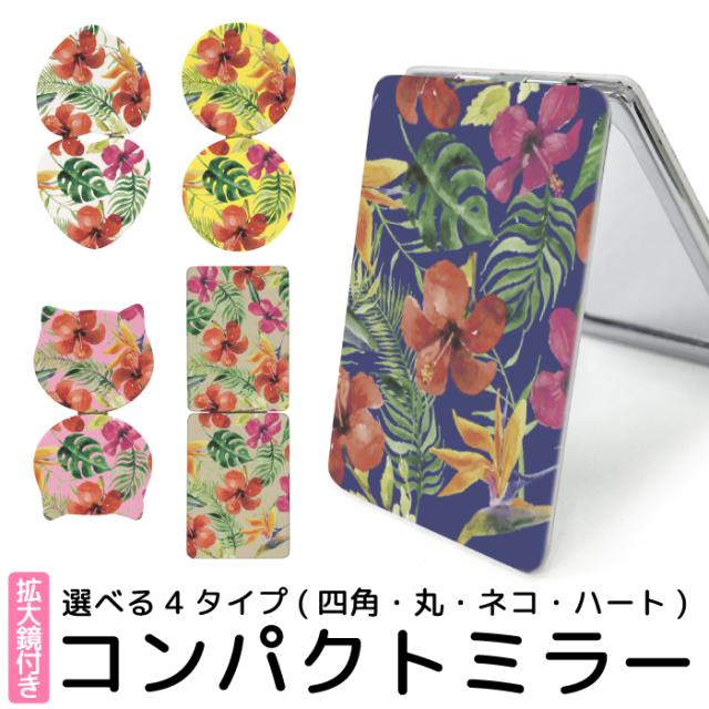 コンパクトミラー 折りたたみ 鏡 コンパクト ミラー 拡大鏡 付 携帯ミラー デザイン プリント ハンドミラー 二つ折り 手鏡 丸型ミラー トロピカル 両面ミラー 四角 長方形 丸 円 ねこ 猫 ネコ ハート kgm009