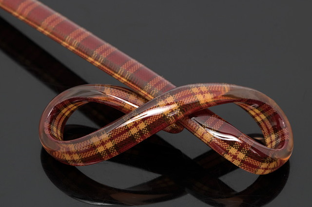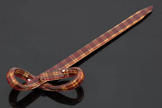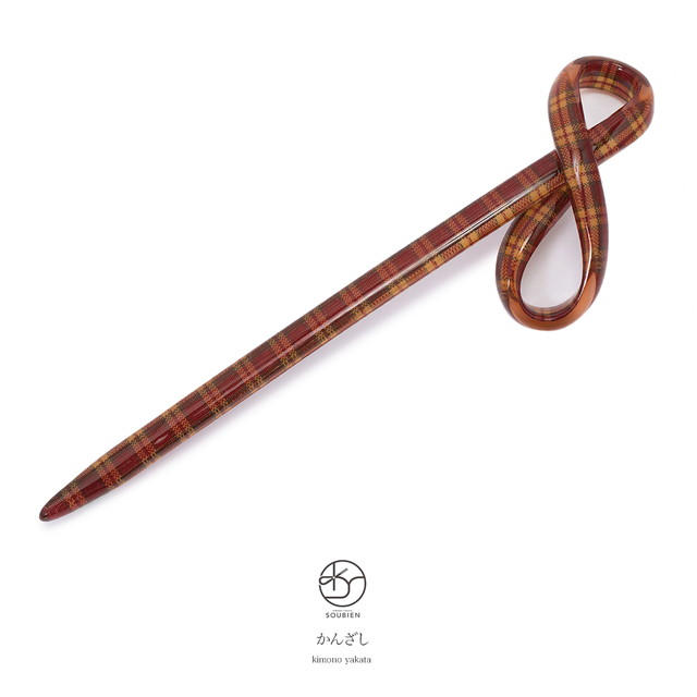 カジュアルなデザインのひねり簪です。チェックのデザインを透明感のある艶やかな素材でコーティング、リボン型にひねったカワイイ簪です。浴衣や夏着物など、暖かい季節の和装には特におすすめです。また和装に限らず普段使いもしていただけます。こだわりの髪飾りを一つ加えていただくだけで、コーディネートにおしゃれ感と個性を引き立たせます。