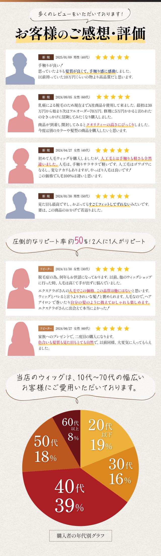 当店は人毛100%のウィッグのみを取り扱う【人毛ウィッグ専門店】だからこそ、自然で安いフルウィッグをご提供することができております。
