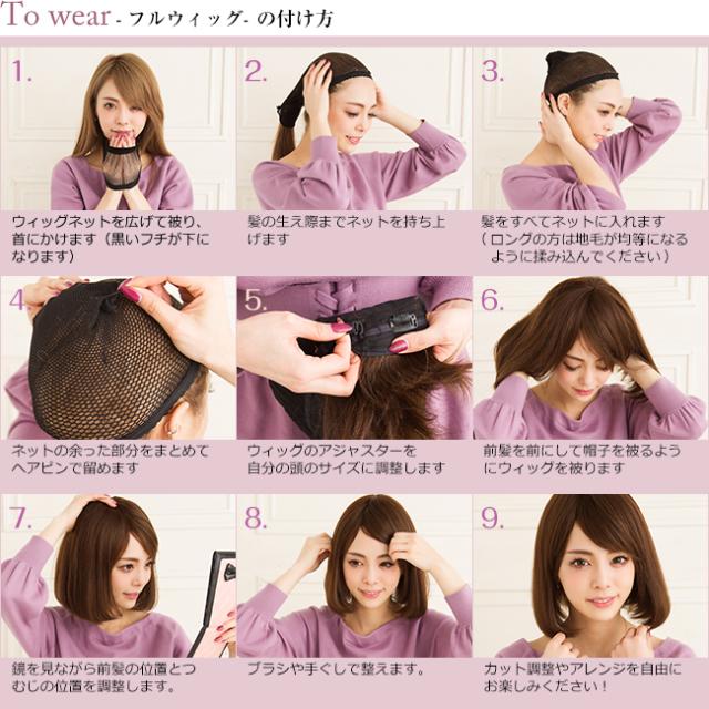 ・前髪や襟足箇所にボリュームを出すため、短い毛を含めるふかし加工をしております。 ・丸洗い・ブラッシング・カット・カラーリングが可能、ドライヤー・コテ・アイロンの使用が可能です。 >>ウィッグの洗い方はこちら>> ※髪にツヤを持たせるため、長持ちさせるためにも必ずウィッグに適したブラシで梳かすようにしてください。(当店でも販売しています) ※暗めのカラー(特に #1B)は最初のうち、色落ち(色移り)する場合がありますが品質上、問題はありません。必要であれば優しく手洗いしてからご使用ください。 ※カラーは可能ですが、うまく染まらなかったり、傷む可能性などがあるため推奨はしておりません。 ※ドライヤー・コテ・アイロンなどは、約180度まで使用可能ですが、ウィッグが傷む可能性がありますので、120度前後を推奨しております。 ・商品写真はできる限り実際の色と同じに見えるように撮影したものを掲載していますが、お客様の見る液晶画面や部屋の照明により、色合いの見え方や感じ方が異なる場合があります(iPhone等の自動色補正がある端末で見ますと実際より明るく表示されることがあります)。 >>各カラーの説明・お客様の声はこちら>> ・モデルが着用している掲載写真はカット、整髪料を使用してスタイリングしているものもあります。(初期状態はストレートに近いです) ※当店ではカット、スタイリングなどは行っておりませんので、必要があれば美容室やご自身にて調整してからご使用ください。 ・当店のウィッグはすべて人毛100%、且つハンドメイド製品のため、製品毎に若干の違いがあったり、白髪や紐が混ざっている場合があります。初回着用前にご確認していただき、必要があれば根元から抜いてください。同様にウィッグ特有の新品の匂いが気になる場合は初回着用前に風通しの良い日陰で数日干していただくか、優しく手洗いしてからご使用いただき、髪の長さも必要があれば初回着用時に調整してください。 ※後ろ髪の長さは仕様の +0〜5cm(つむじの中央から計測。サイドもほぼ同等の長さ)、頭囲(内側の寸法)は約±1cm程の誤差がある場合がございます。 ※初めてブラッシングをした際に、毛が多く抜けることがありますが、品質上、問題はありません。 ※製造上の都合やお客様のご意見を元に仕様を変更する場合があります。詳細やご不明な点がございましたらメールにてお気軽にお問い合わせください。 |
