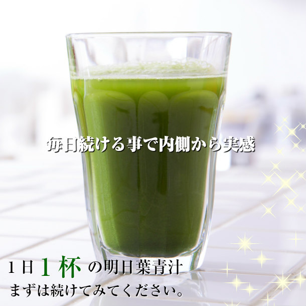 - 青汁大好きなのでここの明日葉毎月購入してます♪? 飲みやすいので食事と一緒に飲んでます♪? お店も速い対応で助かってます♪? またよろしくお願いします♪?