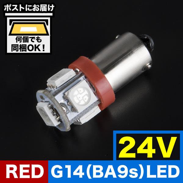 24V カラーLED レッド 赤 SMD 5連 G14(BA9s・T8.5) LED 電球 トラック デコトラ ダンプ 大型車 無極性