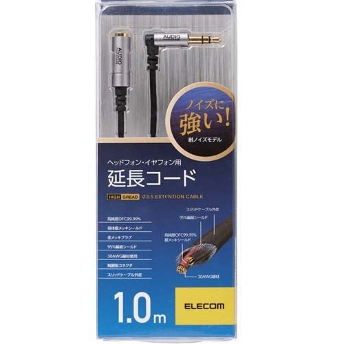 ●ノイズに強く、線材とコネクタ部分へのノイズを徹底的に抑えた耐ノイズモデルのヘッドホン・イヤホン用延長コードです。