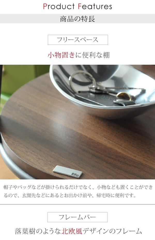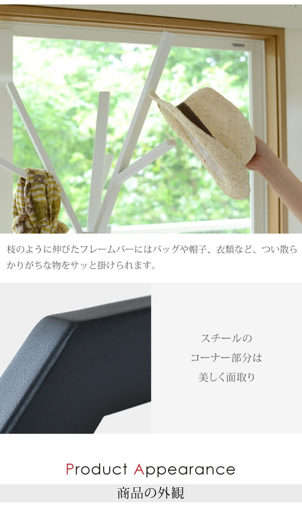 お部屋に戻った際のコートや、鞄掛けに。デザインが、お部屋のアクセントになります。