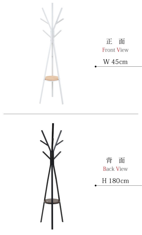 ■サイズ [外寸] 幅45×奥行45×高さ180cm [内寸] (棚)直径28.5cm (棚下)高さ42.5cm ■材質 [本体]合成樹脂化粧パーティクルボード(メラミン樹脂) [フレーム]スチール(粉体塗装) ■収納量・耐荷重 [ハンガー部]約5kg以下/ヶ所 [棚]約5kg以下 ※全体で約25kg以下まで ■その他 ・商品によって色味や木目などの風合いが異なります ハンガーラック おしゃれ コートかけ スリムハンガーラック スリム 玄関 シンプル おしゃれなハンガーラック インテリア ホワイト 省スペース 北欧 家具 ブラック ハンガーシェルフ コンパクト ポール ※記載は商品仕様の一部です。仕様説明不足等の理由での返品はできません。特に適合等は必ずご確認ください。