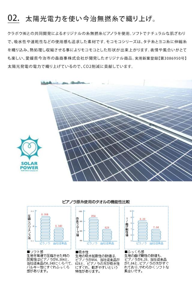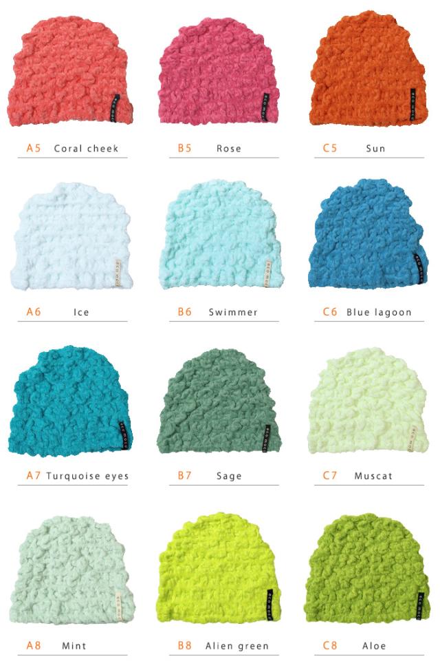 今治のモコモコタオル素材で作ったタオルキャップ。柔らかくフィットする伸縮性と、綿98%でお肌にやさしい仕上がり。濡れ髪の水分を吸収し乾きやすくしてくれるので、お風呂上りやプール帰りに便利です。クラボウとの共同開発によるオリジナルの糸無撚糸ピアノラを使用。吸水性や速乾性などの使用感も追求した素材です。愛媛県今治市の森商事株式会社が開発したオリジナル商品。実用新案登録【第3086950号】太陽光発電の電力で織り上げているので、CO2削減に貢献しています。