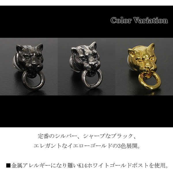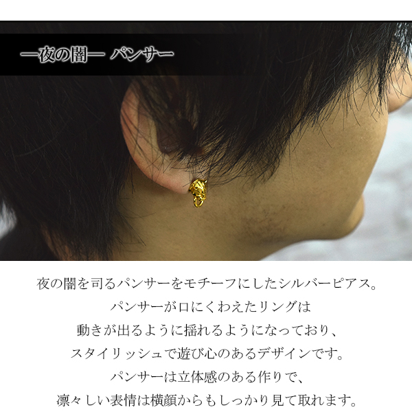 夜の闇を司るパンサーをモチーフにしたシルバーピアス。