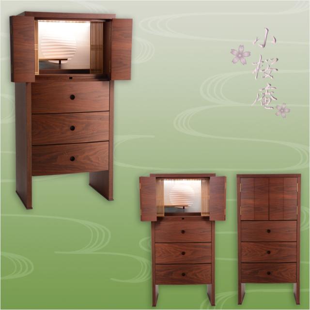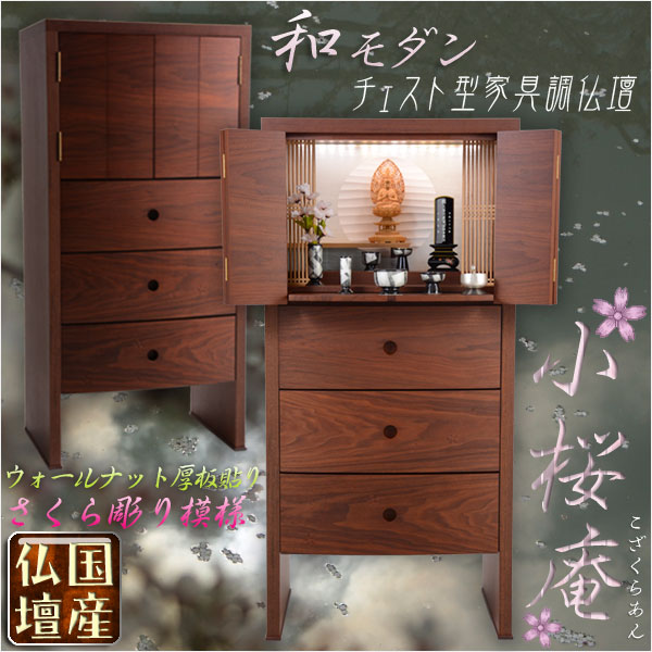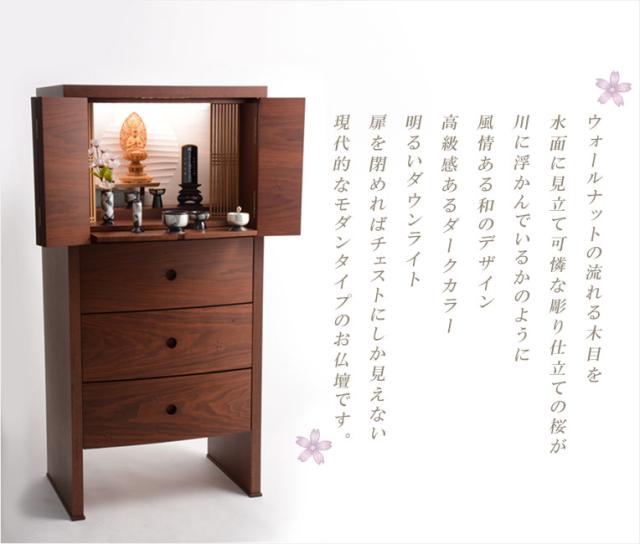 【国産仏壇】現代調高級モダン仏壇【気品あるダーク色の和み仏壇:ウォールナット厚板貼り 小桜庵42号】桜の彫り模様入り 送料無料