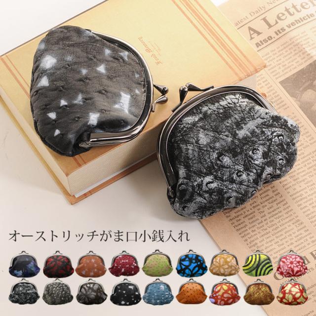 オーストリッチ がま口 財布 日本製 全18色【ネコポスで送料無料】