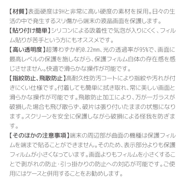 | 耐衝撃・キズ防止 | 指紋・油分防止 | クリーニングクロス付属 |