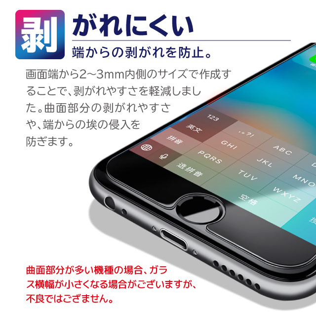 | 機能 | 表面硬度:9H | 透過度95%以上 | ラウンドエッジ加工 |