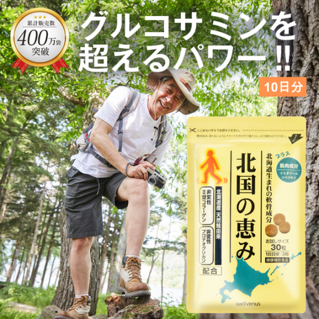 【楽天ランキング1位】 プロテオグリカン 2型コラーゲン ヒアルロン酸 配合 グルコサミン を超える 新軟骨成分配合サプリメント 北国の恵み (約10日分)