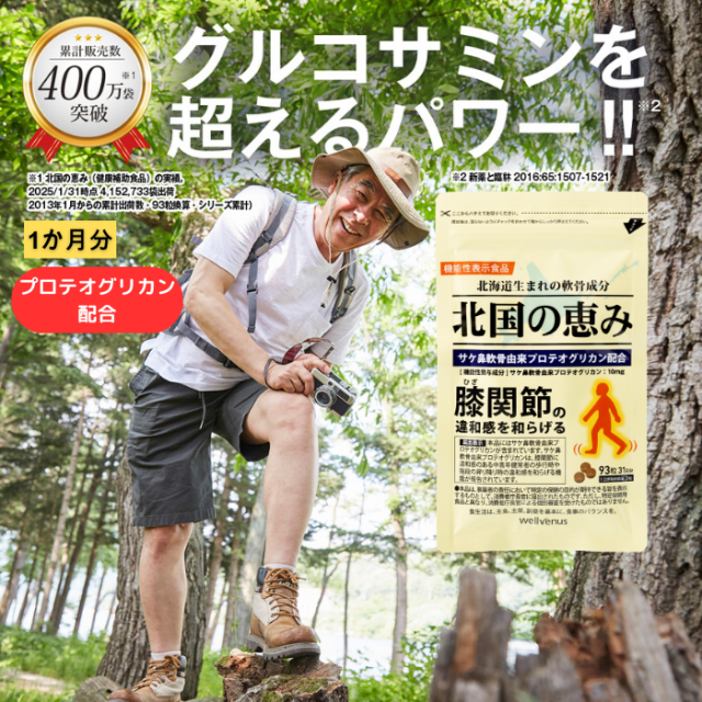 北国の恵み 93粒×1袋 約1か月分 プロテオグリカン 膝 2型コラーゲン サプリメント ウェルヴィーナス公式 機能性表示食品