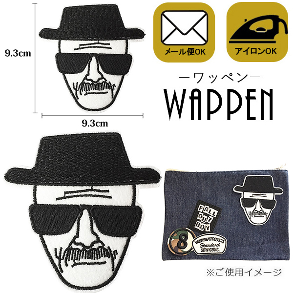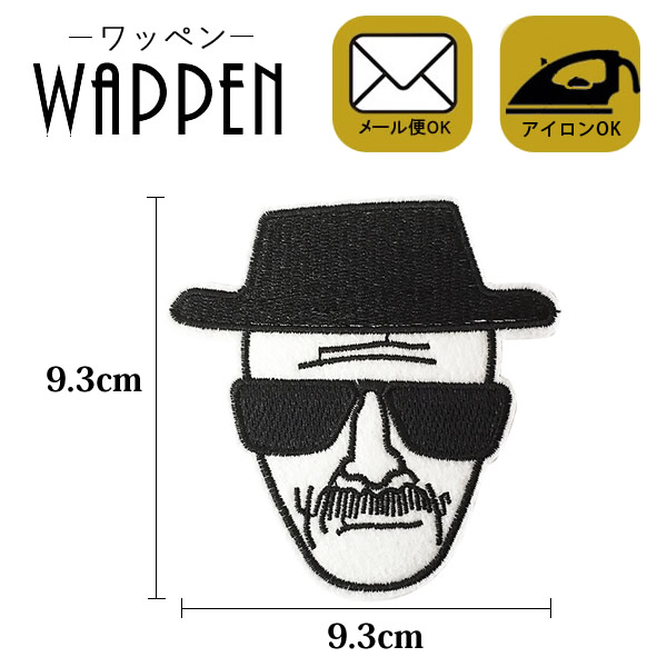 ワッペン 刺繍ワッペン アイロン接着 縦9.3cm×横9.3cm サングラス 髭 ひげ ヒゲ 帽子 アップリケ アイロンワッペン 母の日 プレゼント ギフト