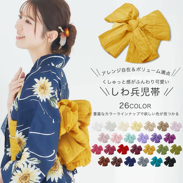 浴衣 しわ兵児帯 新色登場! 全26色【簡単帯結び 兵児帯】浴衣 レディース 赤 ピンク 白 紫 緑 紺 黒 くすみ 黄色 ベージュ