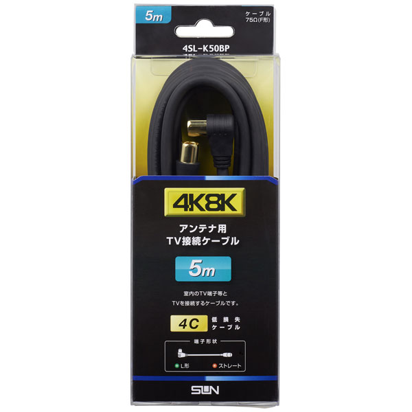 サン電子 4SL-K50BP 4K・8K対応 アンテナケーブル(4C)【5m】ストレートプラグ-L形プラグ[4SLK50BP] 返品種別A