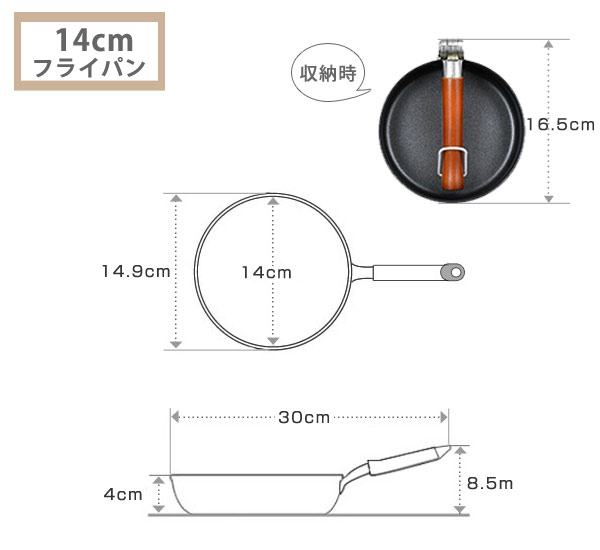 お弁当作りやパンケーキを焼くのに便利な14cmのミニサイズです。