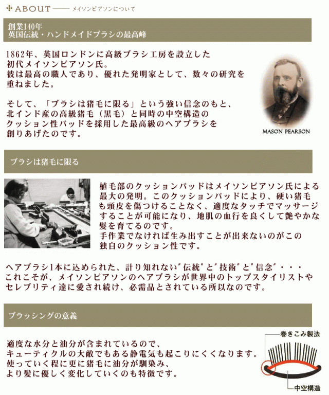 猪毛にナイロン毛を混ぜる事でくし通りがよくなりました。