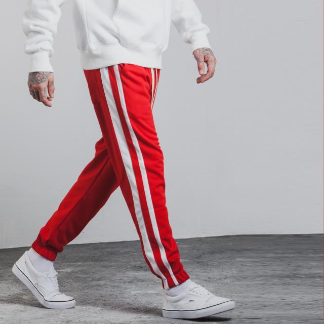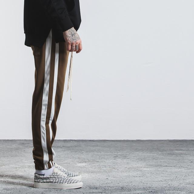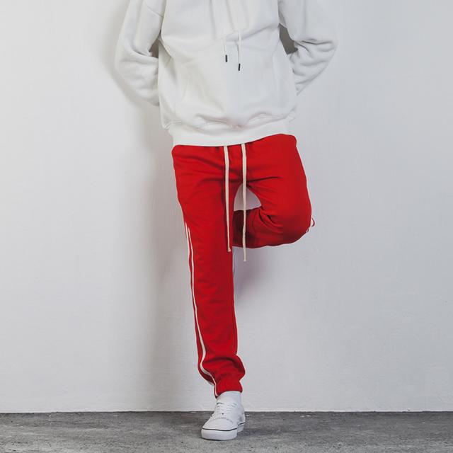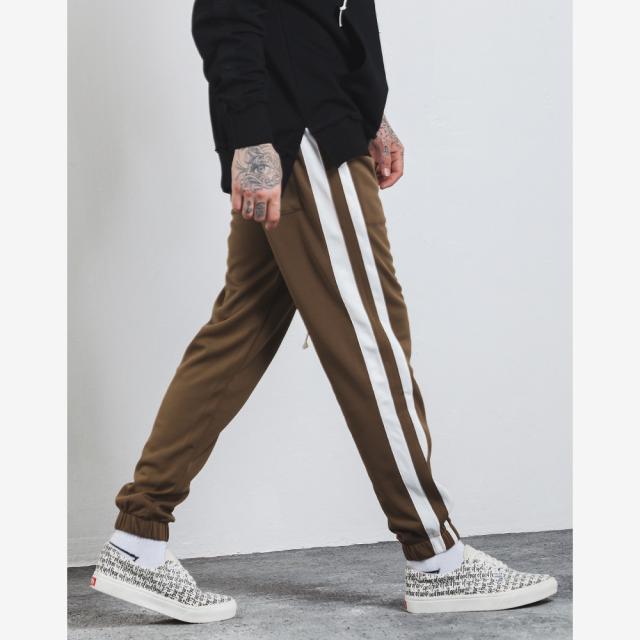 注目のラインパンツが登場!ジョガーデザインにすることでスポーツMIXな印象を演出。