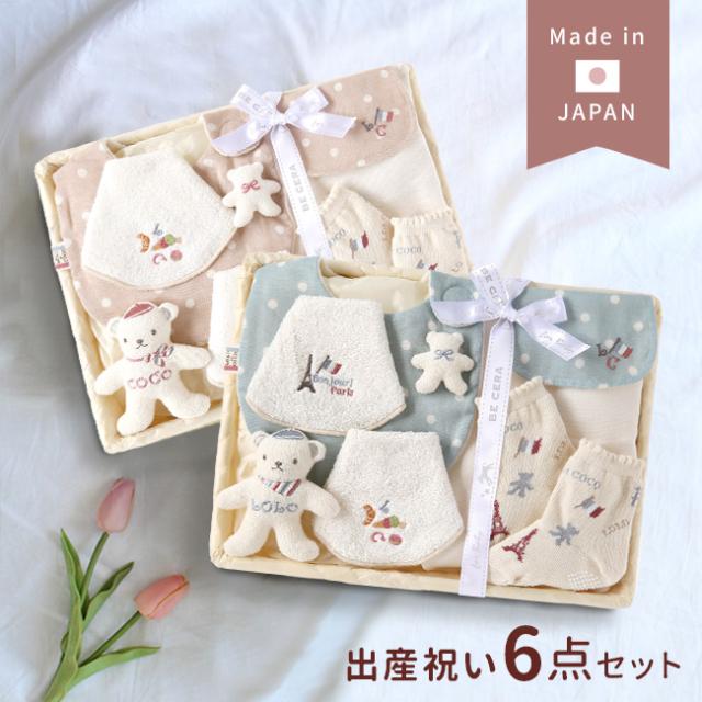 ベビー雑貨が6点入った出産祝いにぴったりのギフトセット。エッフェル塔、クロワッサン、フランス国旗、ジェラート…パリのミニョン通りに暮らす、ふたごのくま「ロロとココ」デザインの可愛いベビーグッズです。