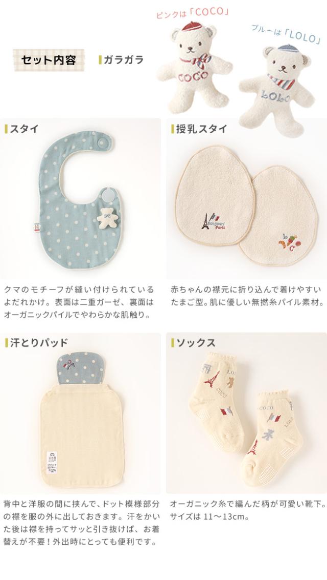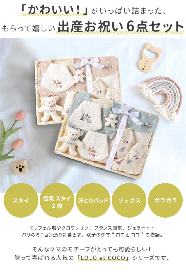 LOLO et COCO ロロココ 出産お祝いセット カゴM-1 7953-0530(出産祝い セット おしゃれ 男の子 スタイ 日本製 ギフトセット 女の子 出産 祝い 新生児 かわいい ベビー ギフト 赤ちゃん オーガニックコットン 人気 プレゼント) 即納