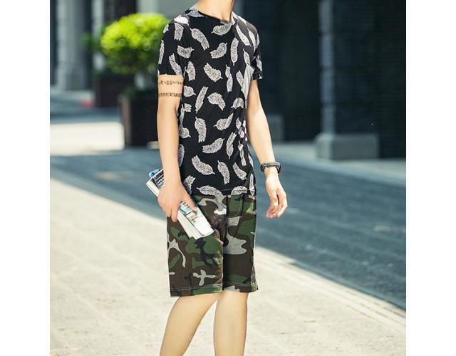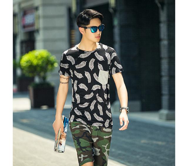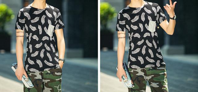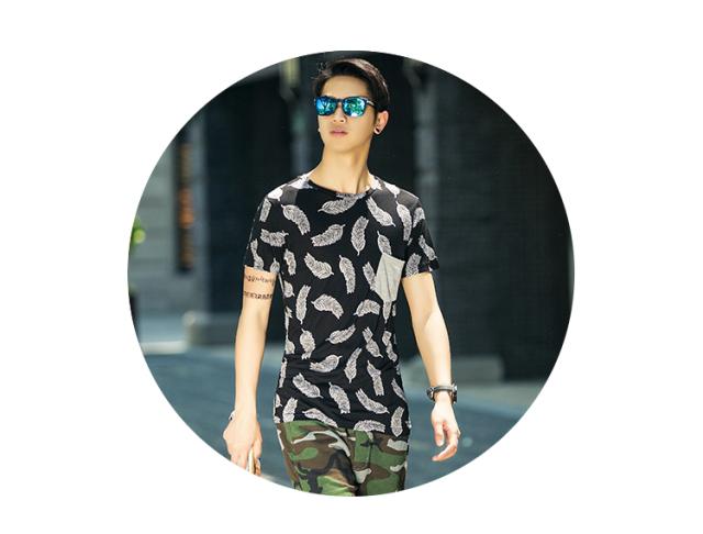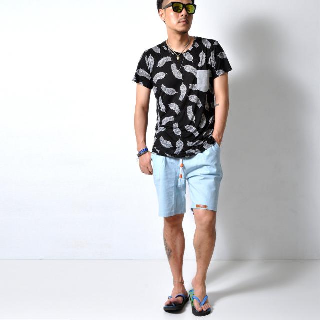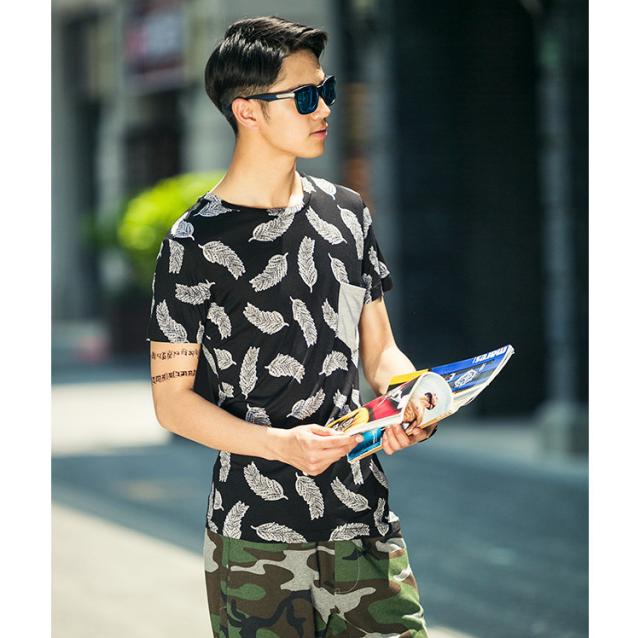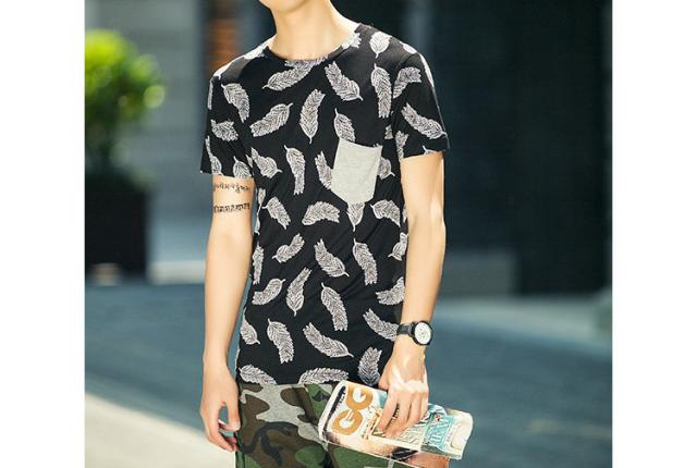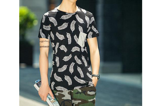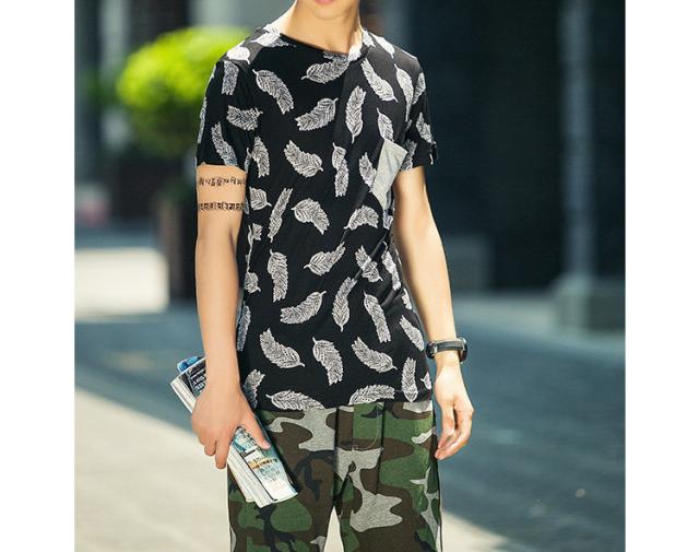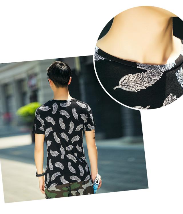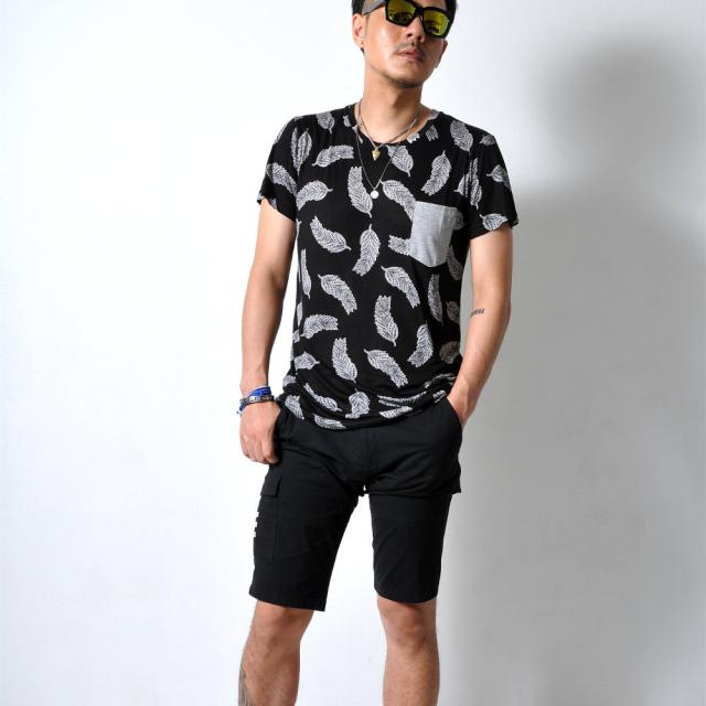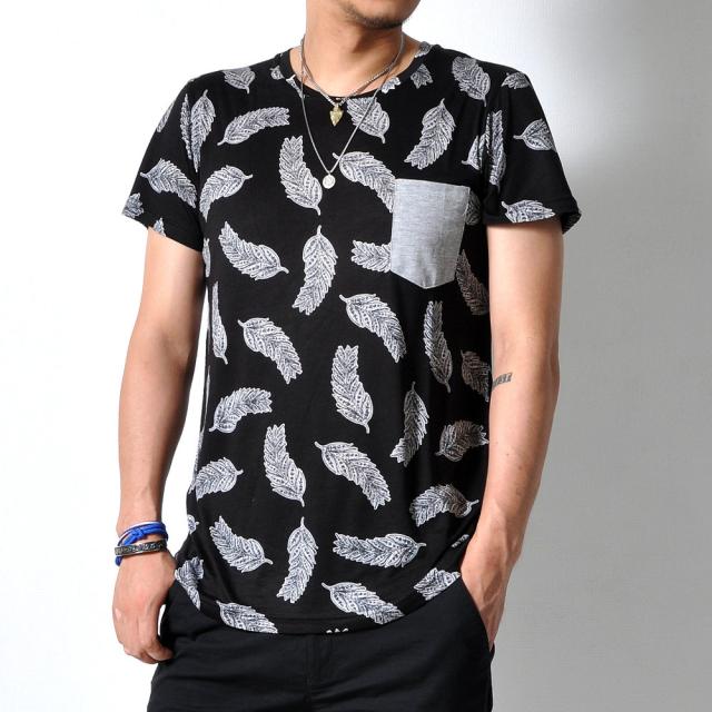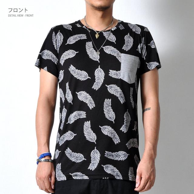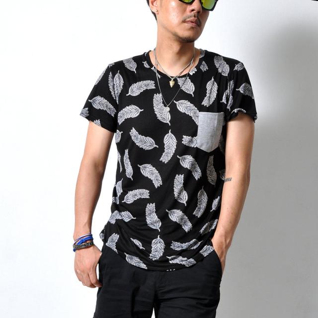 見た目にもインパクトのあるフェザーデザイン半袖Tシャツです。通気性もよく、夏に向けてオススメの1枚です。
