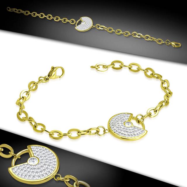 ゴールドパヴェパドロックステンレスアンクレット ブレスレット クリスタル 南京錠 パベ キラキラ サージカルステンレス316L製 金メッキ 金色 メンズ レディース 足首 腕輪 バングル アームレット 手首 フット 足輪 ステンレスチェーン レッグチェーン フットチェーン 春 夏