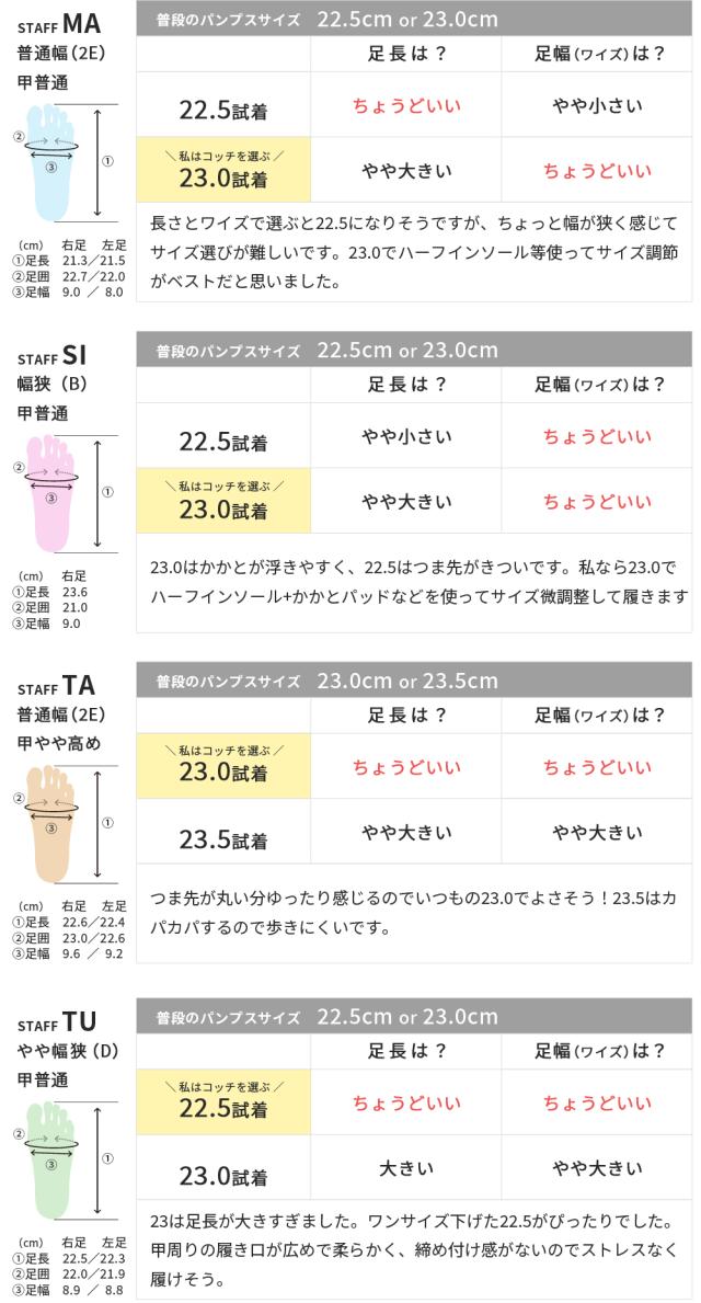 - 私の足がスニーカー足なのでどうしても爪先は多少痛いですが、それでも全然柔らかくて履きやすいです! 踵も高すぎず低すぎず、ちょうどいいです。 リボンも可愛いし、買って良かったです。