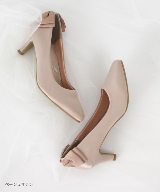 結婚式 パンプス 疲れない 太ヒール 靴 バックリボン 6センチヒール ベージュ ゴールド シルバー ブラック 黒 お呼ばれ 極ふわっ 18161
